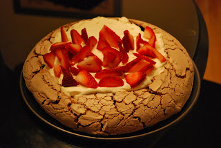 If you're looking for an impressive dessert that's a little something different, look no further. I have made one of Nigella's dessert recipes before, but wasn't 100% pleased with the results. This time, I could not have been happier. This Chocolate Strawberry Pavlova was rich and sweet, yet light and fruity. An amazing treat that works for any occasion.